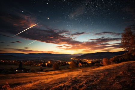Bright shiny star rips the night sky., generative AI