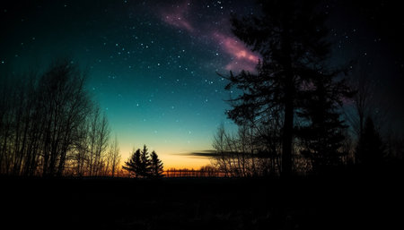 Silhouette of tree in starry Milky Way generated by artificial intelligence