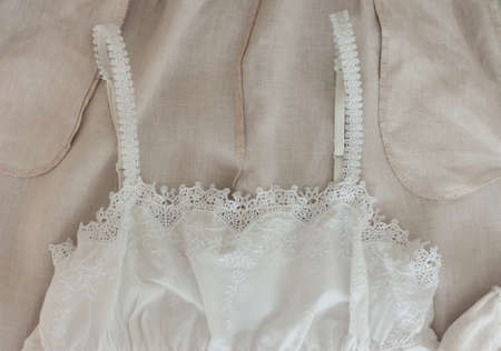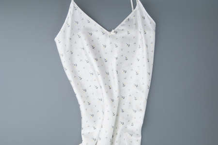 classic female nightgown on a gray background, isolated, top view