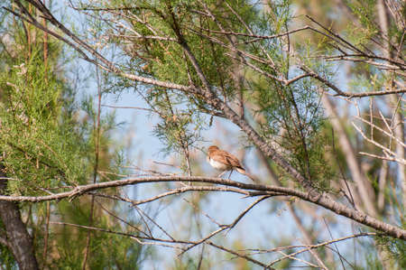 Common nightingale Luscinia megarhynchos. Songbird in the wild.