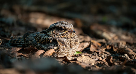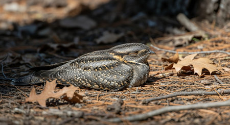 The European nightjar (Caprimulgus europaeus), common goatsucker is a crepuscular and nocturnal bird in natural habitat