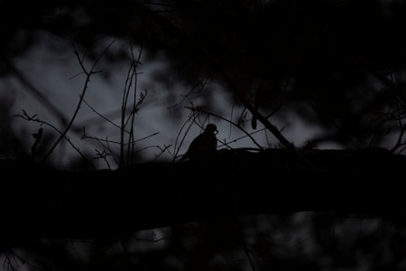 Dark mourning dove (Zenaida macroura) silhouette against a dark gray background