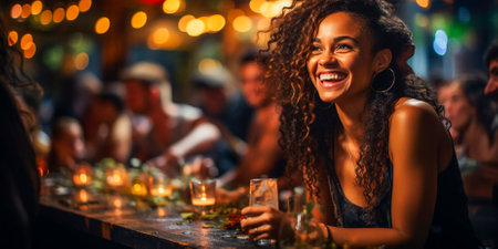 Group of multicultural friends enjoying an evening out. Celebrate and socialize over cocktails in the bar-restaurant. Representing a vibrant and inclusive lifestyle. Friends having fun