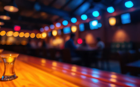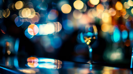 The soft focus of the crowd behind the sleek dimly lit bar creates an air of mystery and allure elevating the atmosphere of opulence and indulgence in the shadows.