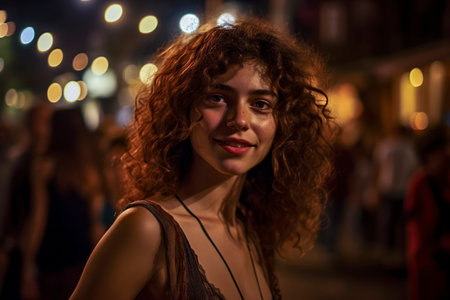 Summer Night's Delight: Brunette Woman Embraces the Festive Vibe, Dancing Joyfully in Urban Nightlife