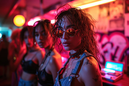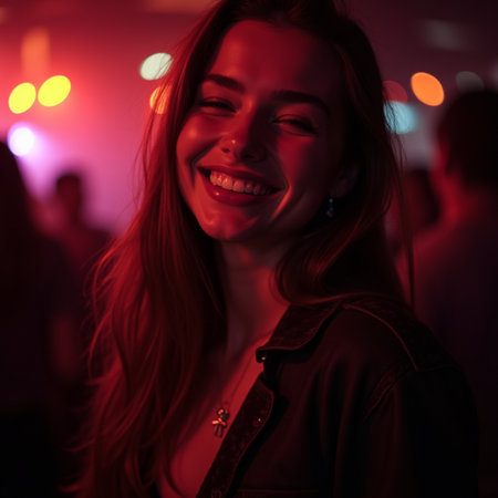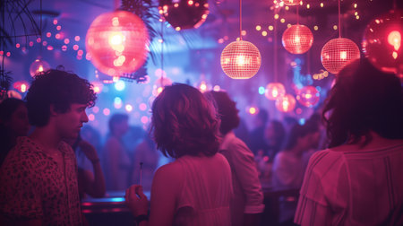 Vibrant Nightlife Gathering With Colorful Lights and Dressed Attendees in a City Venue