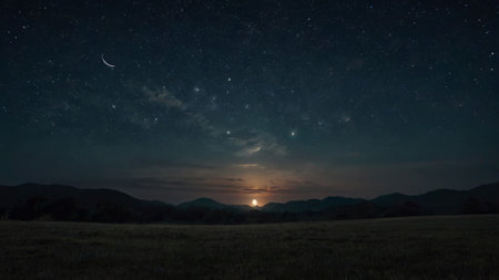 Night sky with stars and moon. Beautiful night landscape with starry sky.