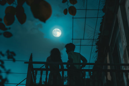 Moonlit silhouettes in India: a peaceful evening scene with Indian culture. Serene moonlight. And tranquil starry sky