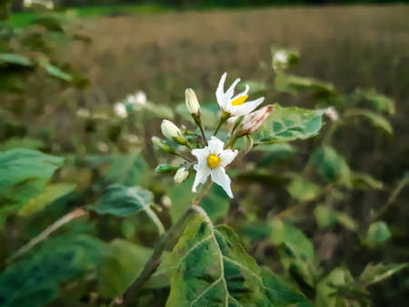 Purple flowers of Solanum arvense in the garden