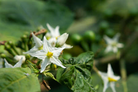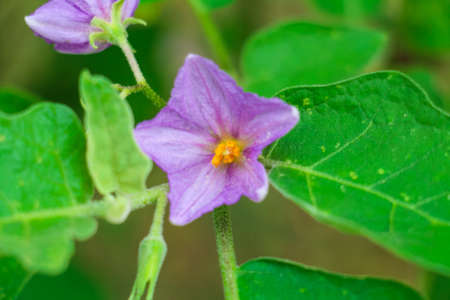 Solanum incanum or thorn apple, bitter tomato blossom in the garden
