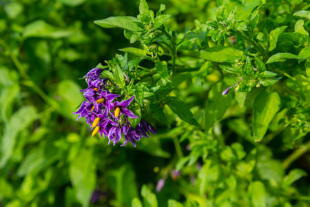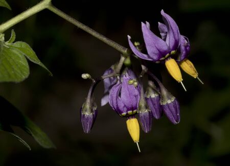 Purple nightshade flowers closeup