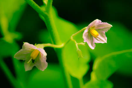 Flower of a thai green eggplant bush, Solanum virginianum