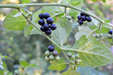 In nature grows plant with poisonous berries nightshade (Solanum nigrum)