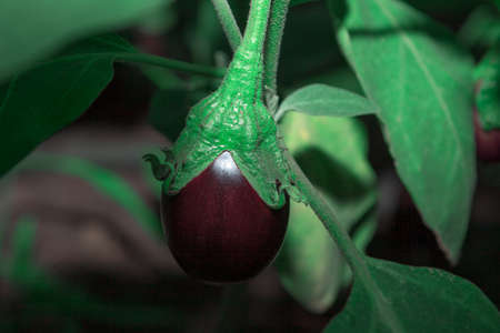 Homegrown eggplant . Growing vegetable growing in the garden