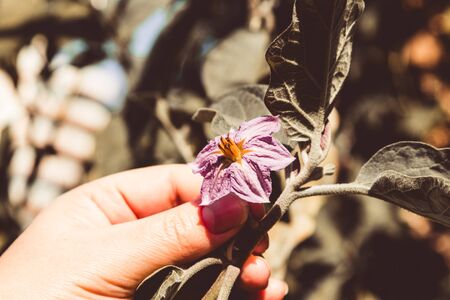 Eggplant flowers on tree.