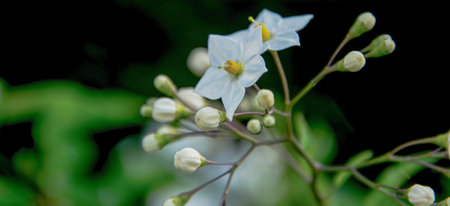 Bittersweet Nightshade blossom against a black background.