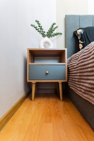 Compact Elegant Storage, Efficient Bedroom Furniture Featuring Single Drawer And Decorative Vase Display, Stylish Compact Storage Solution With Elegant Vase And Functional Bedside Design