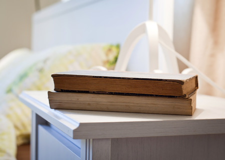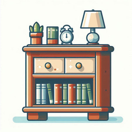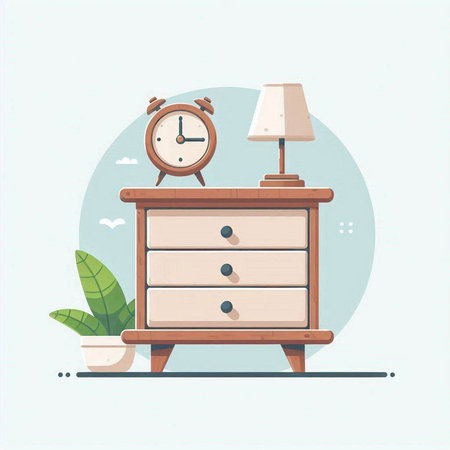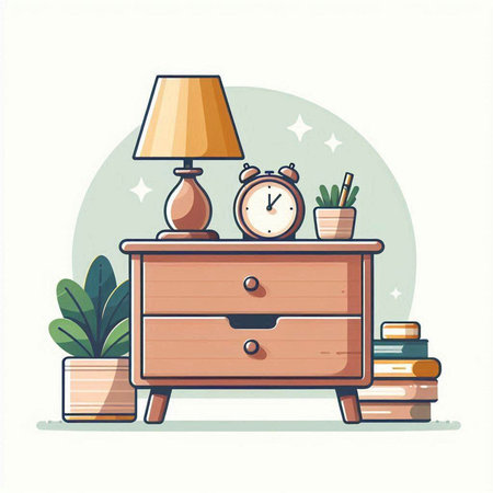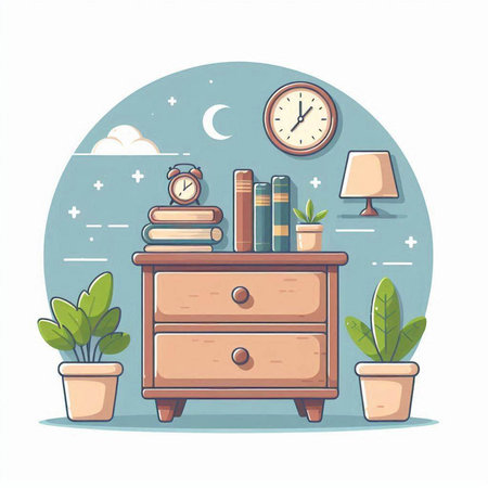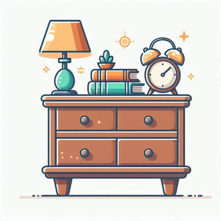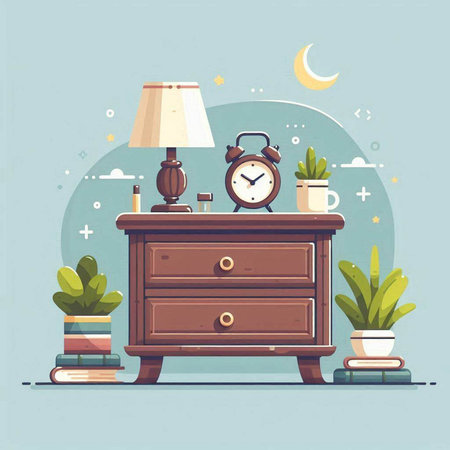 Illustration of a nightstand with a clock and books. Vector illustration.
