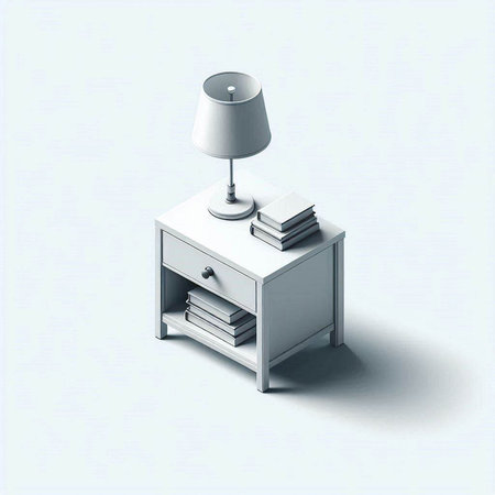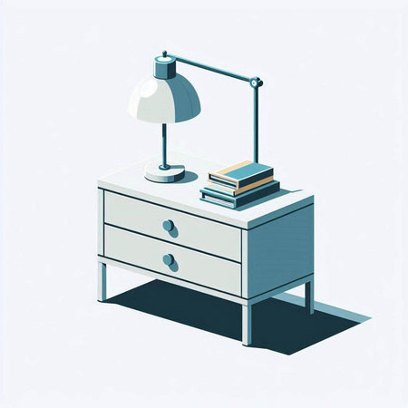 Bedside table with lamp and books. Vector illustration in isometric style.