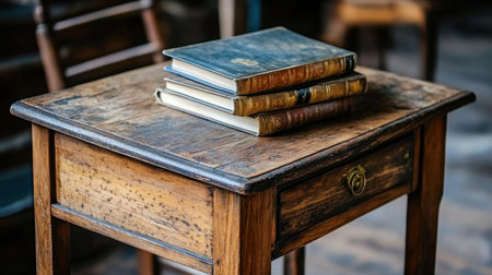 A cozy bedside table filled with personal items like books, cosmetics, and notebooks, showcasing a lived-in and stylish ambiance perfect for lifestyle photography.