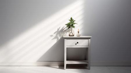 wooden nightstand on a white wall background. 3d rendering. generated by AI.