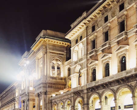 Milan, Italy circa January, 2020: Galleria Vittorio Emanuele in Milan, classic European architecture of Lombardy region in Northern Italy, historical building and famous landmark at night