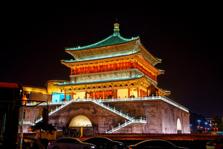 Istanbul, Turkey- September 20, 2017: Obelisk of Theodosius in the ancient Hippodrome Square in Istanbul, view at night with people sitting on benches