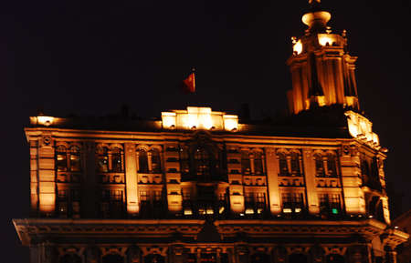 Illuminated lotus crown on top of the Bund Center at night in Shanghai
