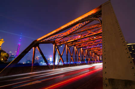 The garden bridge of Shanghai in China, the landmark. Colorful light trails