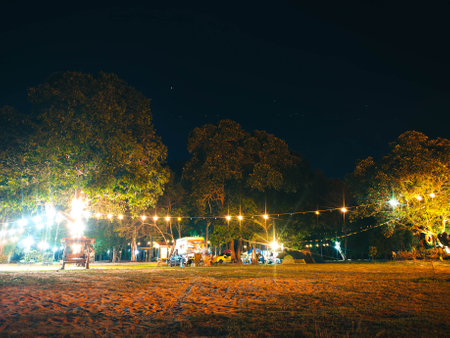 Glittering light illuminated the night, lake surface reflected the light, gentle breeze blew over, the view was spectacular. This is a water storage for Songkra University, Thailand, countless stunning vistas along the way. Casual rambles loop around, it