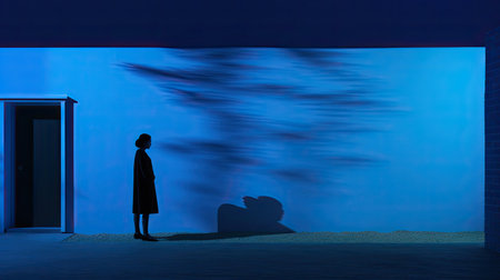 silhouette of person in dark corridor, in style of psychological, children mental health, woman with sad expression on face, by ai generative
