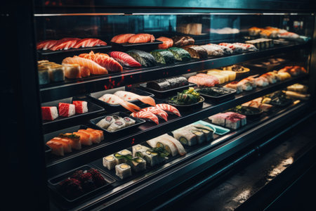 AI Generated. A plate of sushi with a variety of fish and vegetables
