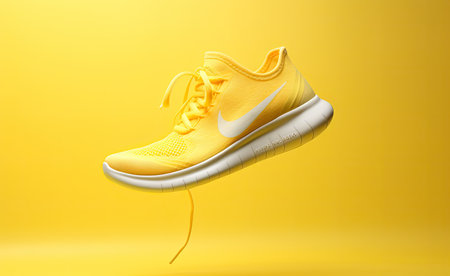 Yellow sneakers on a yellow background. 3d illustration. Mock up