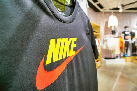 SHENZHEN, CHINA - CIRCA APRIL, 2019: close up shot of black T-shirt Nike store in Shenzhen.