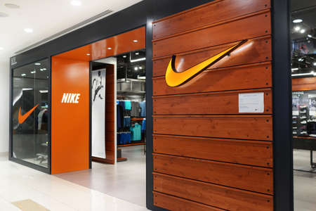 PENANG, MALAYSIA - NOVEMBER 24, 2017: Nike storefront in shopping mall. Nike is an American multinational corporation that design, manufacturing, marketing and sales athletic shoes and apparel.