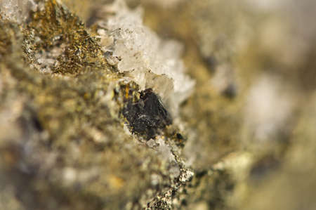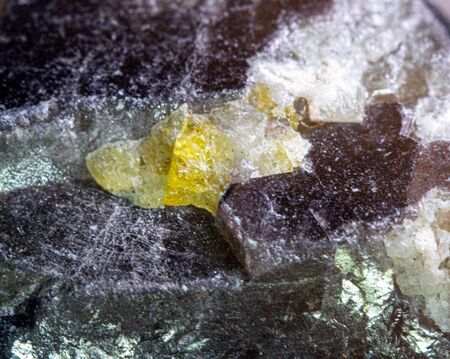 Macro of the mineral stone Columbite, Beryl, Feldspar on a black background close up
