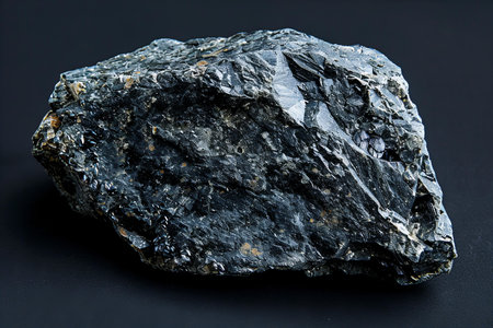 Close-up of a piece of coal on a blue background.