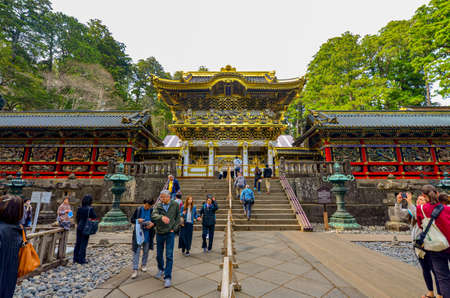 Nikko, Japan – April 16, 2018 : Tourists visit Tosho-gu Shrine in Nikko, Japan. Part of a UNESCO World Heritage Site