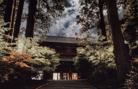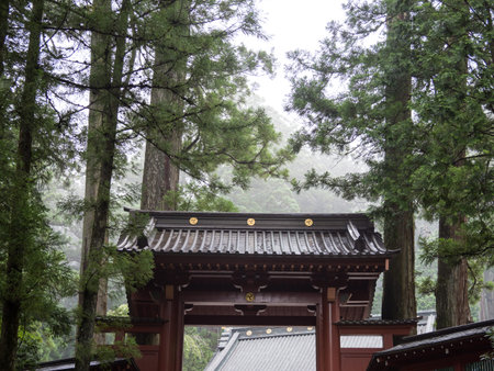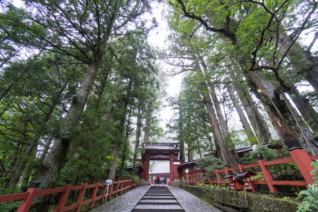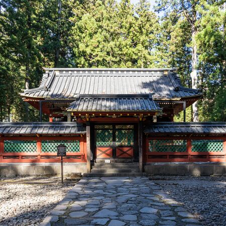 Tochigi, Japan - March 21, 2019: View of Nikko Futarasan jinja which is a Shinto shrine in the city of Nikko, a small city in Japan’s Tochigi Prefecture, in the mountains north of Tokyo.