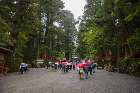 JAPAN- October 17, 2016: Tourists in Futarasan shrine in Nikko