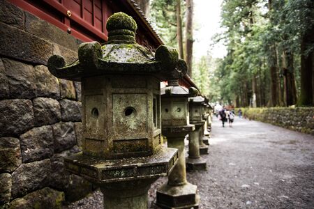 Stone Lanterns on the Side of Toshogu Shrine that lead to Futarasan Shrine in Nikko, Tochigi, JapanNIKKO, JAPAN - NOVEMBER 17, 2015: Stone Lanterns on the Side of Toshogu Shrine that lead to Futarasan shrine located between Tosho-gu shrine