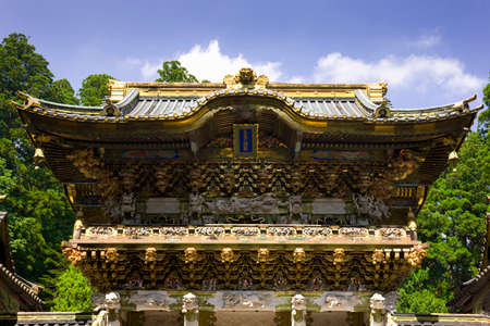 The arts of Yomeimon Gate at Toshogu Shrinea Temple. One of the most beautiful gates in Japan. UNESCO World Heritage Site, Nikko, Japan.