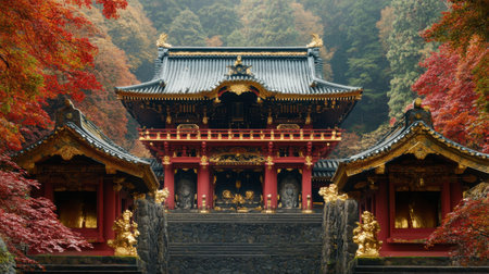 Traditional Japanese Shinto Temple Complex in Autumn, Architecture and Natures Harmony