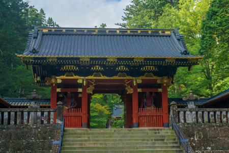 View of the Yashamon Gate, in the Taiyuinbyo Shrine, Nikko, Japan