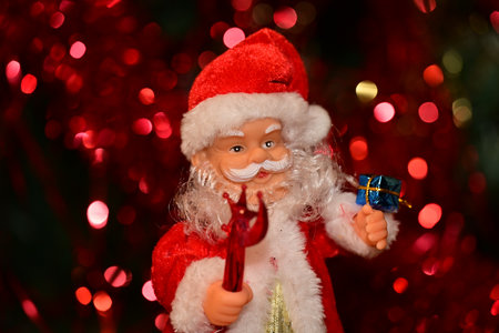Santa Claus toy on bokeh background. Christmas and New Year concept.