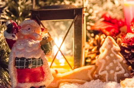 Festive Christmas decoration with traditional Santa Claus figure