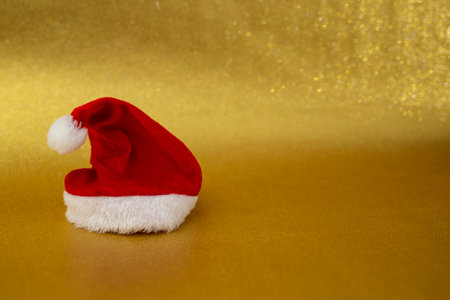 Christmas and New Year holiday background. Santa hat. Fairytale background for winter holidays. Place for text.
