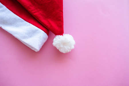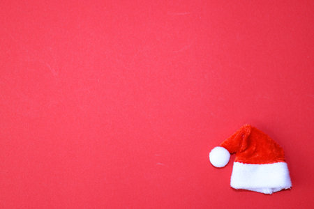 Santa hat on red art paper background for design in Christmas and New Year's concept.