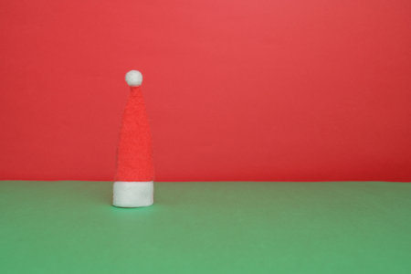 Red santa claus hat on a colored background. Christmas card concept. High quality photo