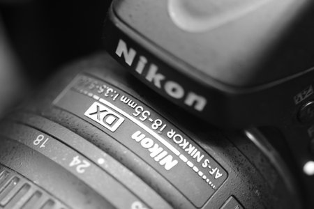 Klang, Malaysia: January 29th, 2024: A close-up view of the AF-S NIKKOR 18-55mm Nikon lens measuring metering
